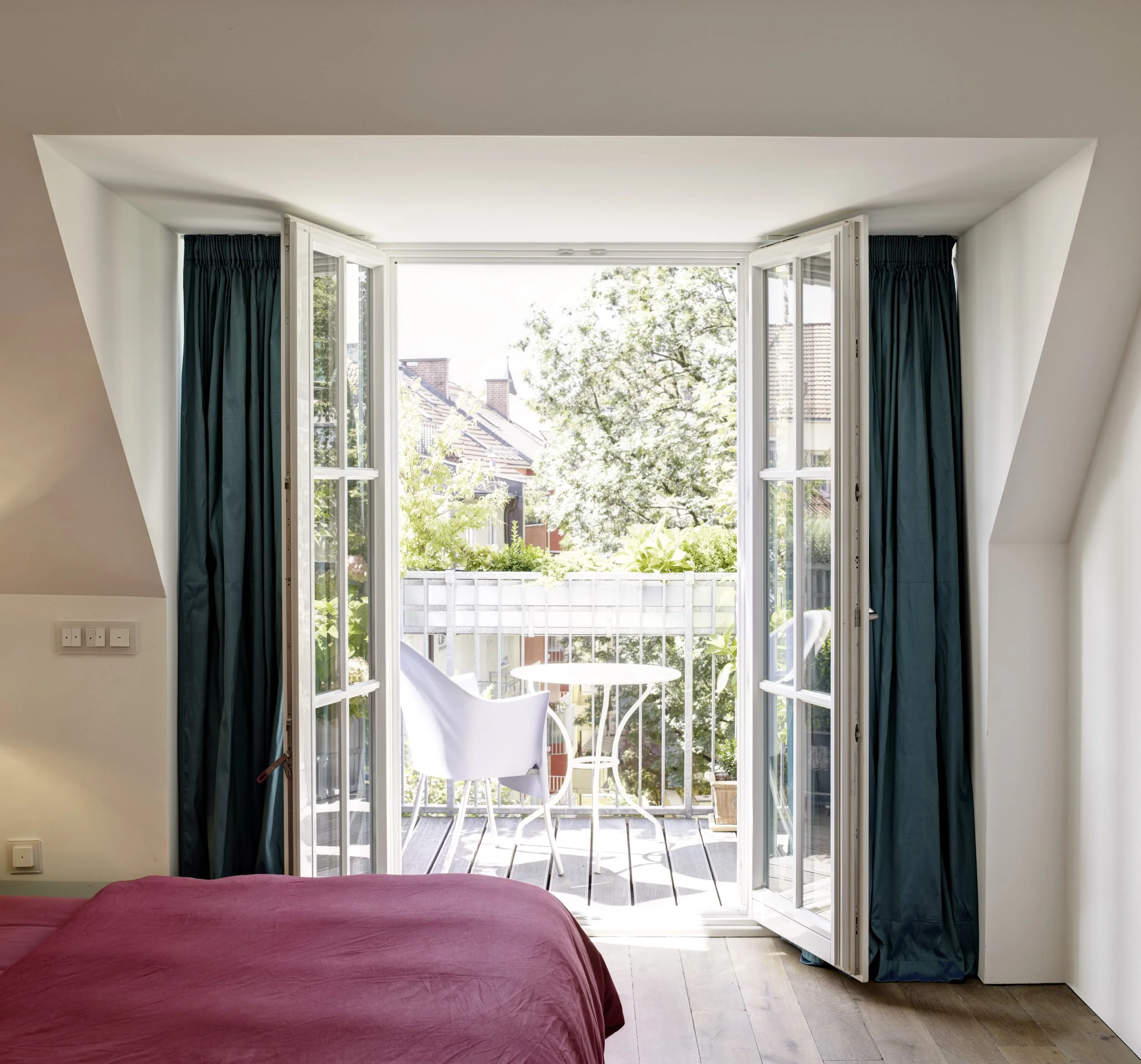 Schlotthauerstraße, München Au Haidhausen Dachgeschossausbau Sanierung einer Dachgeschosswohnungmit Neubau DachterrasseLPH 1-4Baujahr um 1900fertig gestellt 2005 < > Fotos: Jan Schmiedel